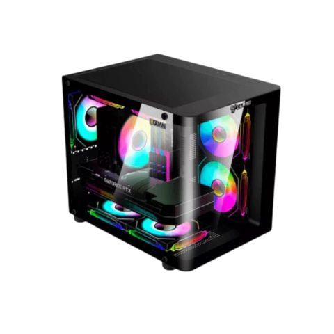 Rodan é o gabinete da Clanm perfeito para quem busca design elegante e funcionalidade eficiente em um formato compacto. Com estrutura robusta em aço SPCC de 0,45mm e painel lateral em vidro de 0,30mm, ele combina durabilidade com sofisticação. Um diferencial exclusivo é o vidro frontal curvo, que acrescenta um toque moderno e proporciona uma visão privilegiada do interior do setup.